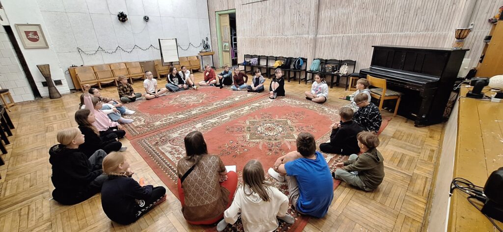 performansas ,,Miško garsai”, kurio metu dalyviai galėjo patys išbandyti